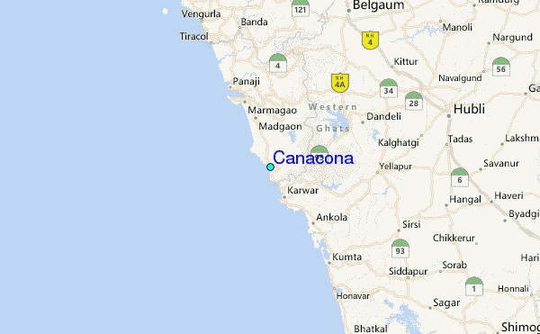 Use this relief map to navigate to tide stations, surf breaks and cities that are in the area of Canacona.