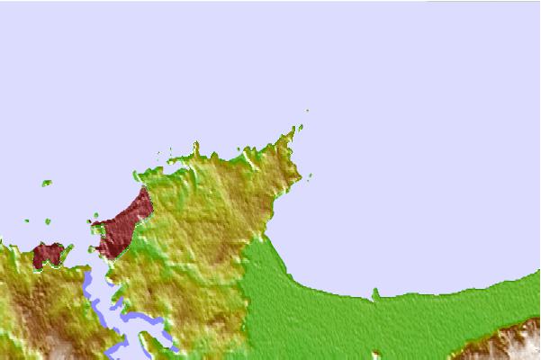 Use this relief map to navigate to tide stations, surf breaks and cities that are in the area of Cancale.