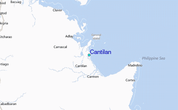 Use this relief map to navigate to tide stations, surf breaks and cities that are in the area of Cantilan.