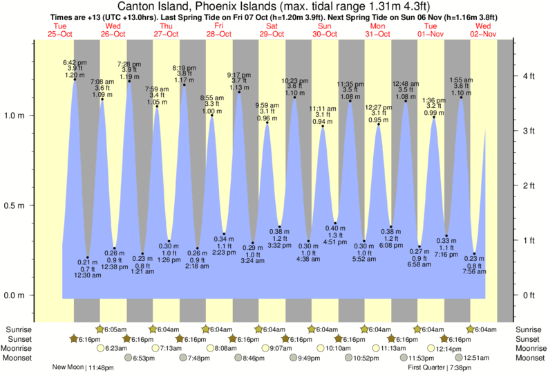 Tide chart for Canton Island, Phoenix IslandsShowing low and high tide times for the next 30 days at Canton Island, Phoenix Islands. Tide Times are +13 (UTC +13.0hrs).