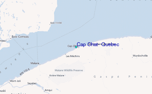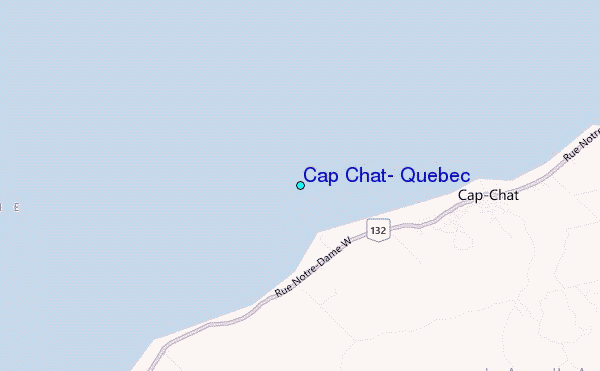 Use this relief map to navigate to tide stations, surf breaks and cities that are in the area of Cap Chat, Quebec.