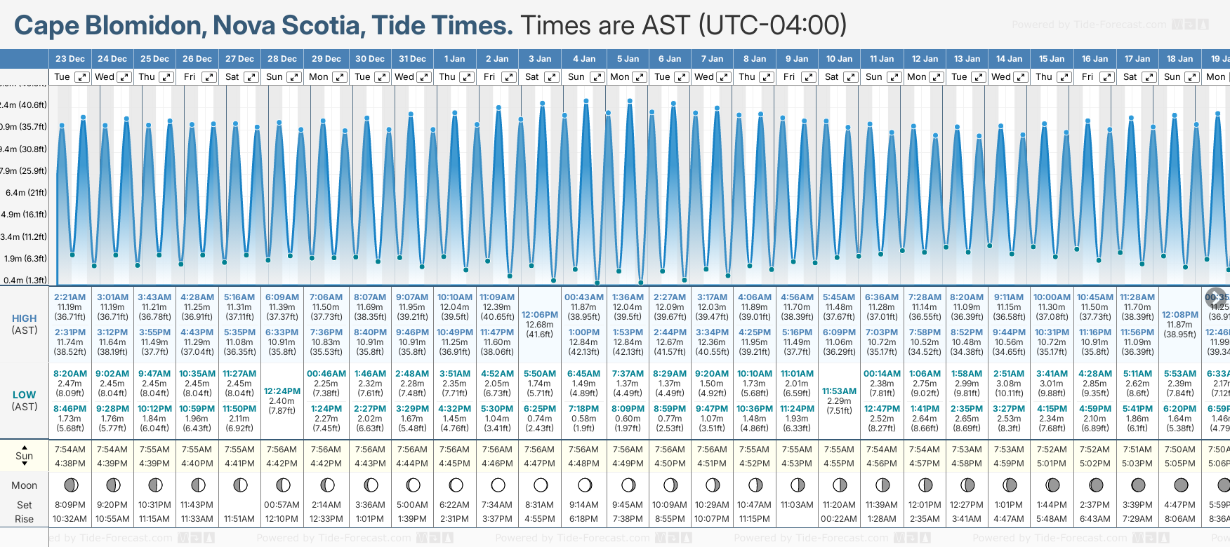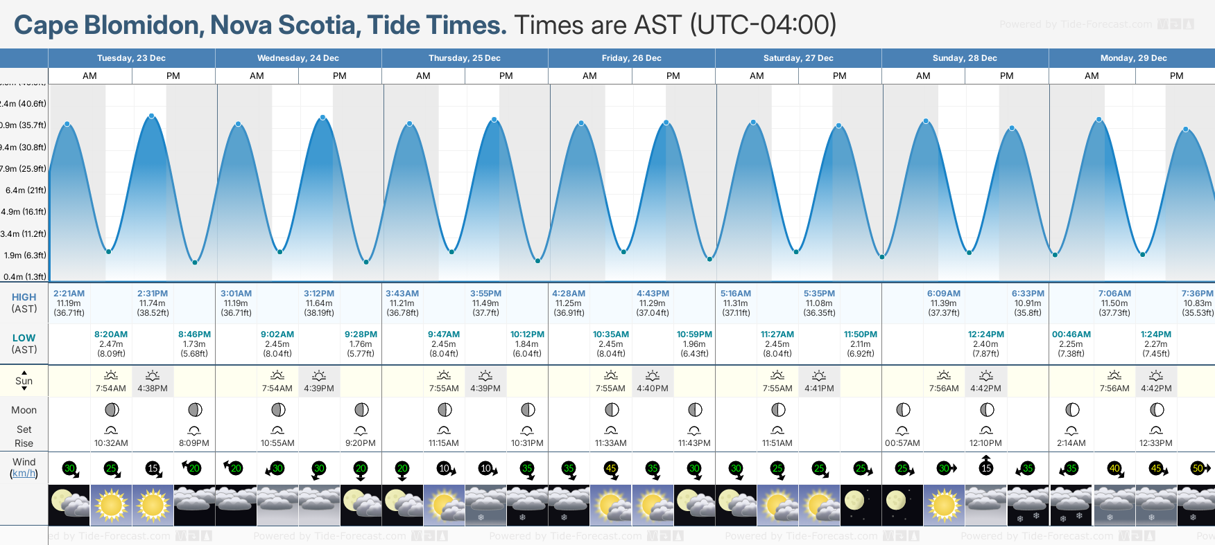 Tide Times for Cape Blomidon (tomorrow): Tuesday 23 December 2025