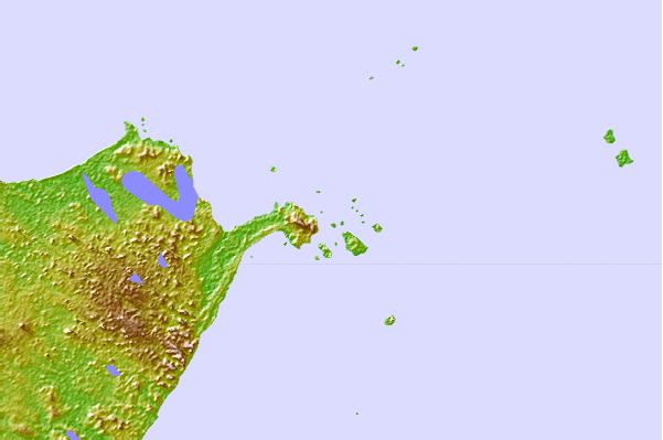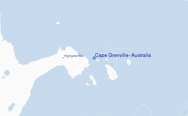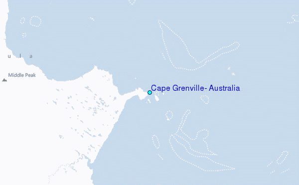 Use this relief map to navigate to tide stations, surf breaks and cities that are in the area of Cape Grenville, Australia.