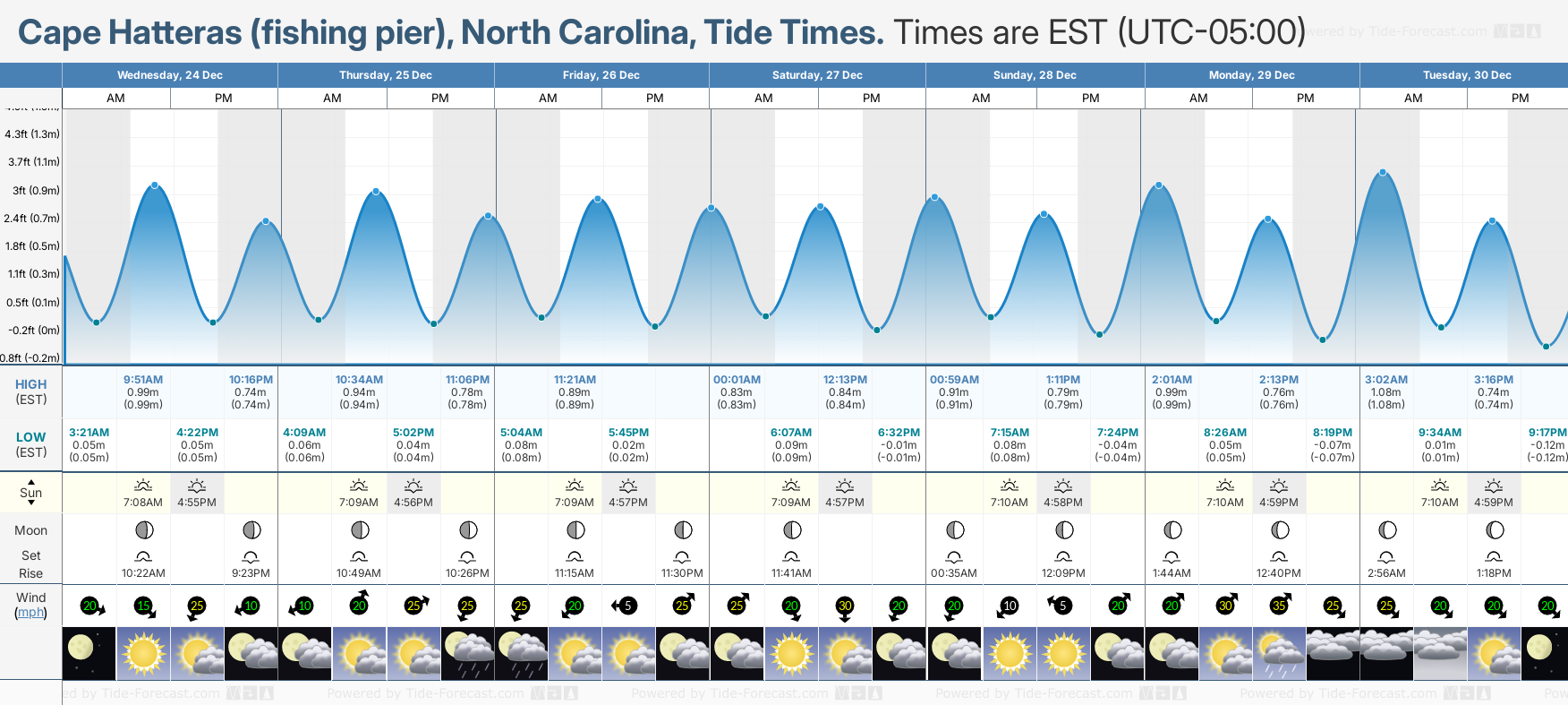 NOTE: Use of this site for Cape Hatteras (fishing pier), North Carolina tide times is subject to our terms.