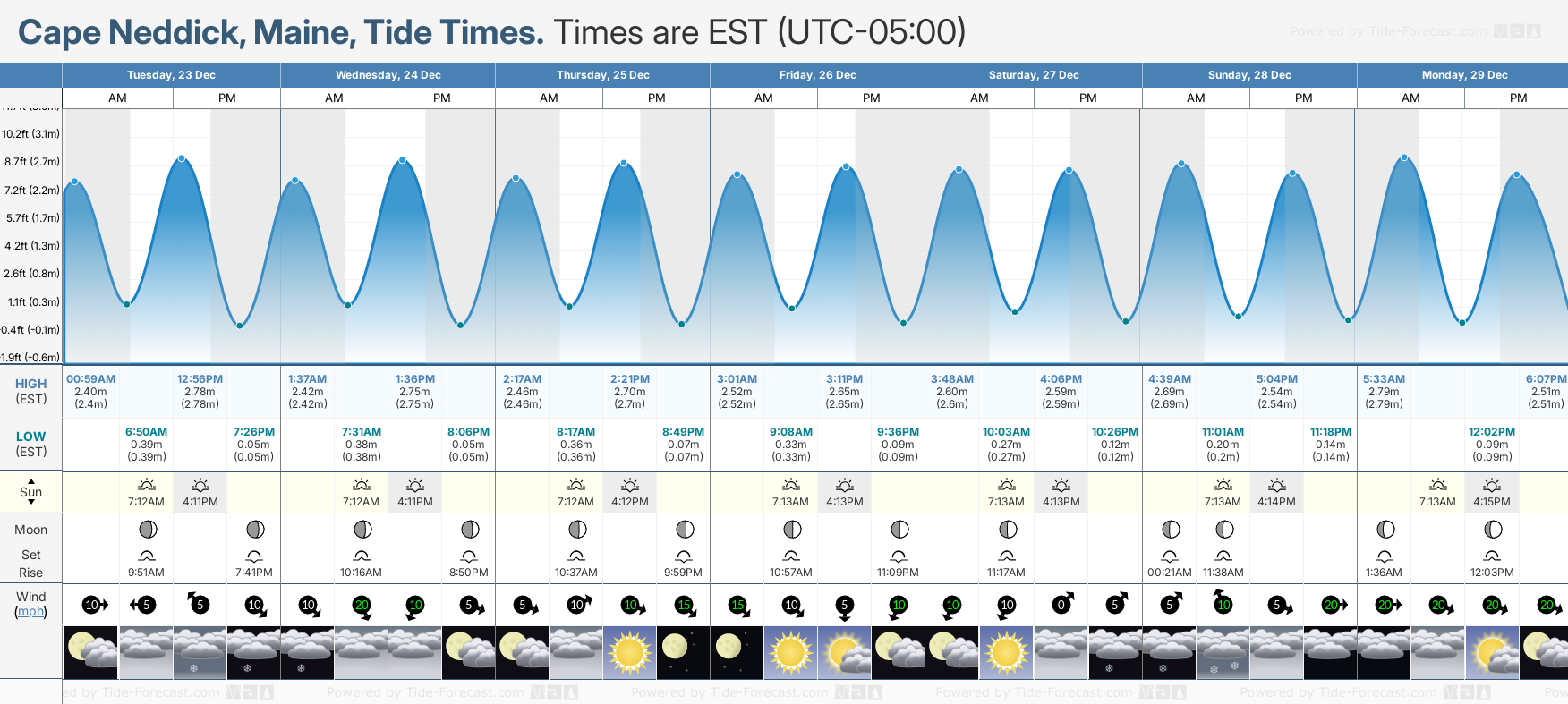 Tide Times for Cape Neddick (tomorrow): Tuesday 23 December 2025