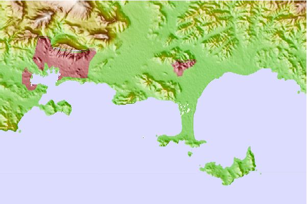 Use this relief map to navigate to tide stations, surf breaks and cities that are in the area of Carqueiranne.