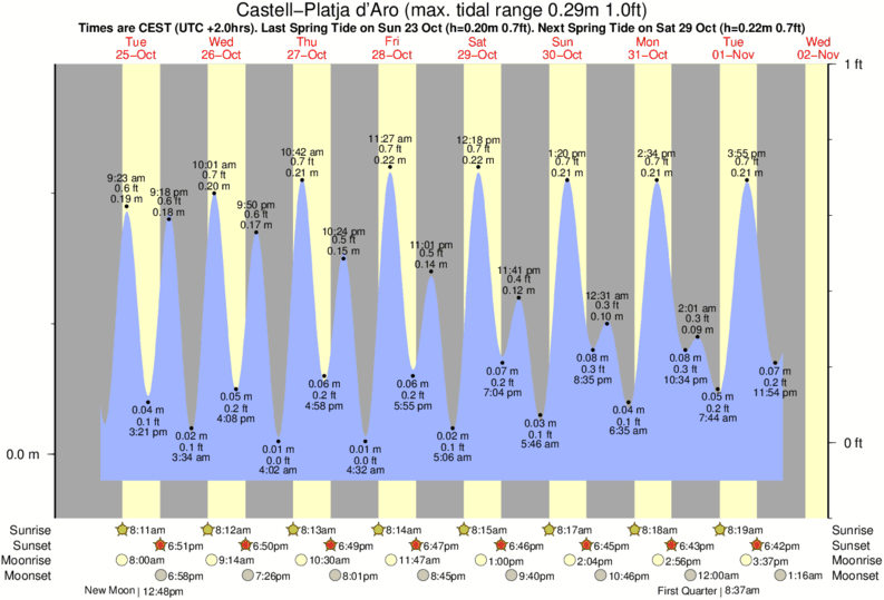December and January Tide charts for Castell-Platja d'Aro: The tide charts below show the height, time and date of high and low tides for the next 30 days.
