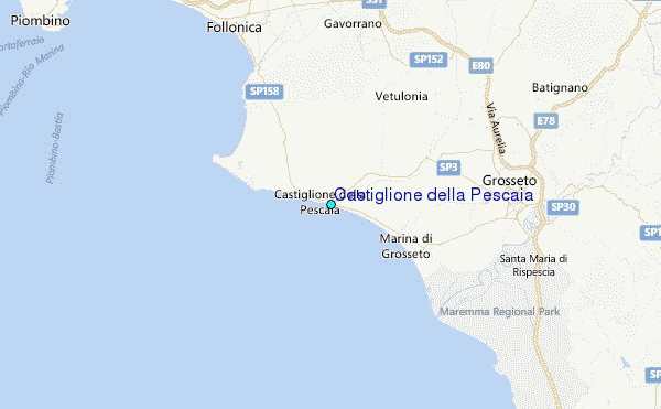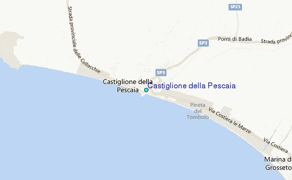 Use this relief map to navigate to tide stations, surf breaks and cities that are in the area of Castiglione della Pescaia.
