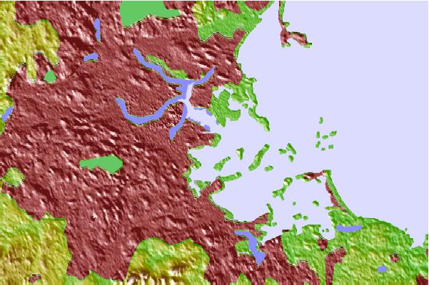 Use this relief map to navigate to tide stations, surf breaks and cities that are in the area of Castle Island, Boston Harbor, Massachusetts.