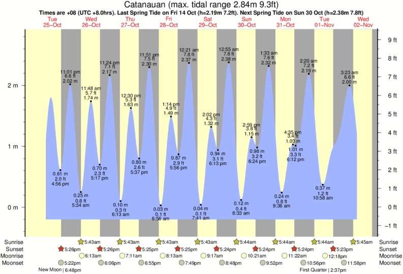 December and January Tide charts for Catanauan: The tide charts below show the height, time and date of high and low tides for the next 30 days.