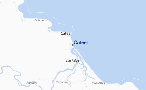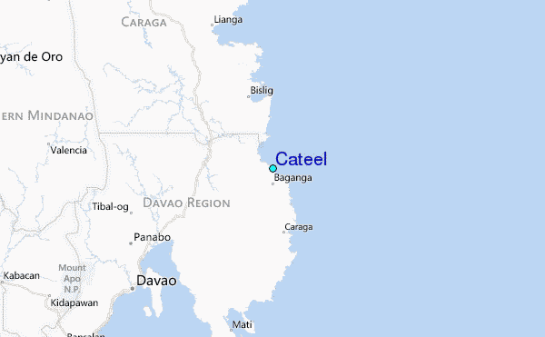 Use this relief map to navigate to tide stations, surf breaks and cities that are in the area of Cateel.