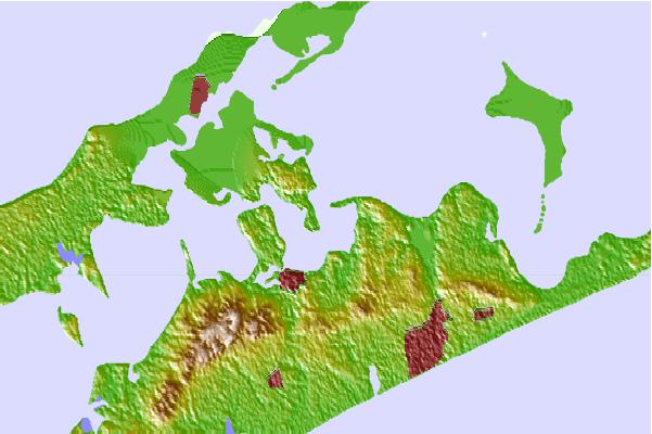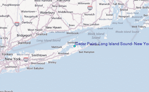 Use this relief map to navigate to tide stations, surf breaks and cities that are in the area of Cedar Point, Long Island Sound, New York.