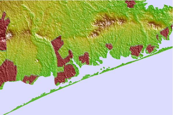 Use this relief map to navigate to tide stations, surf breaks and cities that are in the area of Center Moriches.