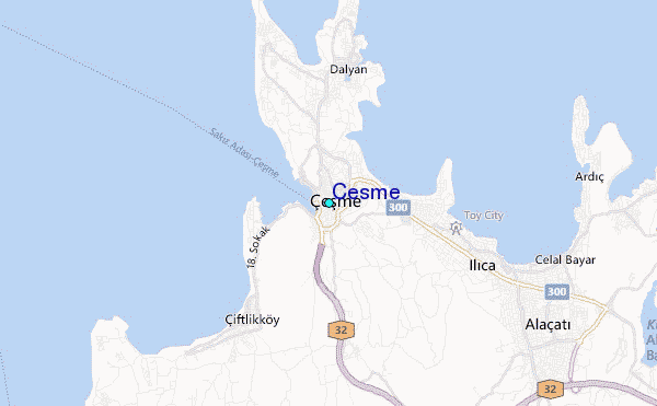 Use this relief map to navigate to tide stations, surf breaks and cities that are in the area of Cesme.