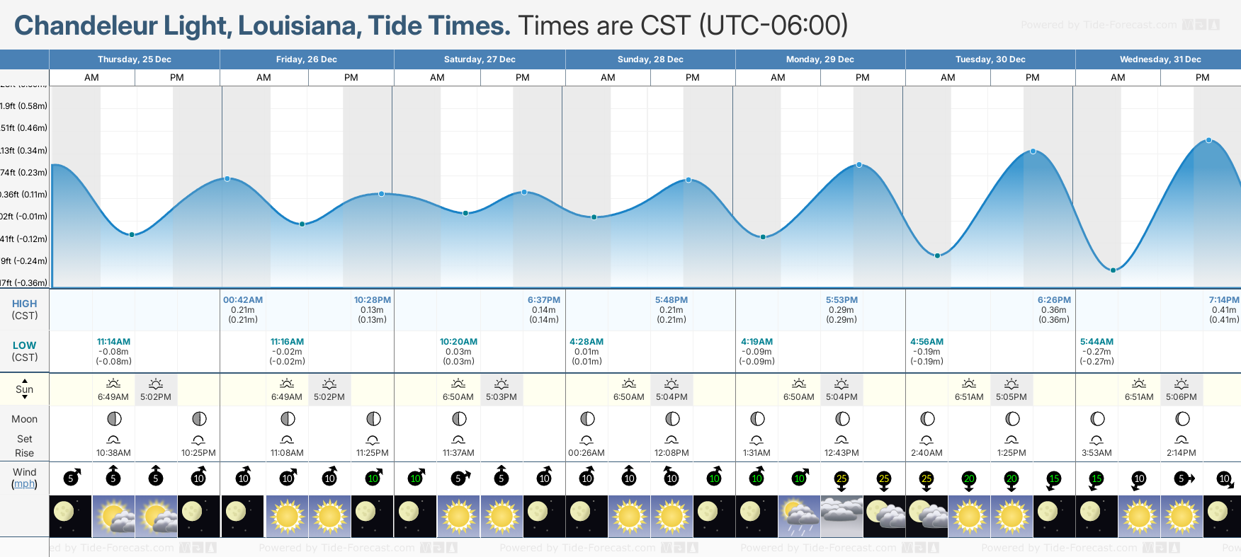 Tide Times for Chandeleur Light (tomorrow): Thursday 25 December 2025