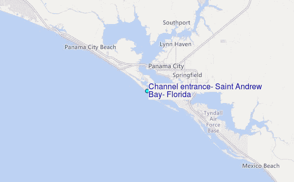 Use this relief map to navigate to tide stations, surf breaks and cities that are in the area of Channel entrance, Saint Andrew Bay, Florida.