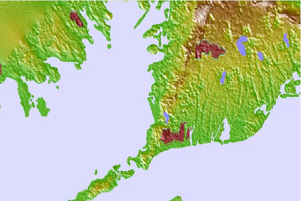 Use this relief map to navigate to tide stations, surf breaks and cities that are in the area of Chappaquoit Point, West Falmouth Harbor, Buzzards Bay, Massachusetts.