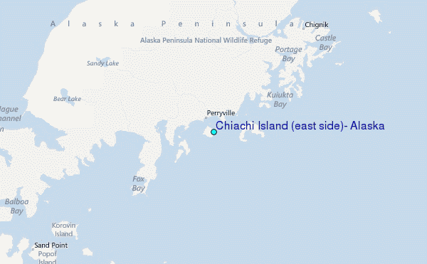 Use this relief map to navigate to tide stations, surf breaks and cities that are in the area of Chiachi Island (east side), Alaska.