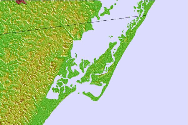 Use this relief map to navigate to tide stations, surf breaks and cities that are in the area of Chincoteague Island, Lewis Creek, Chincoteague Bay, Virginia.