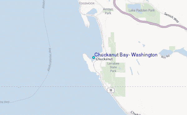 Use this relief map to navigate to tide stations, surf breaks and cities that are in the area of Chuckanut Bay, Washington.