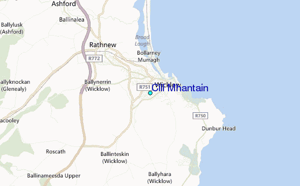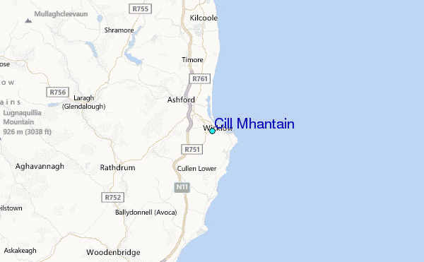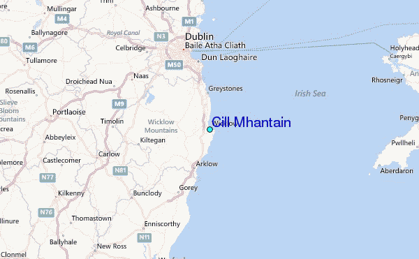 Use this relief map to navigate to tide stations, surf breaks and cities that are in the area of Cill Mhantain.