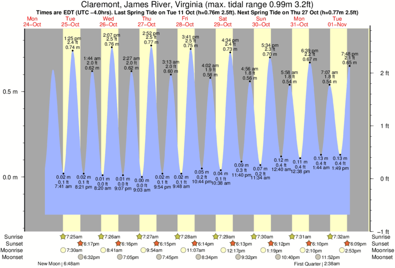 NOTE: Use of this site for Claremont, James River, Virginia tide times is subject to our terms.