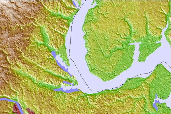 Use this relief map to navigate to tide stations, surf breaks and cities that are in the area of Clifton Beach, Maryland.