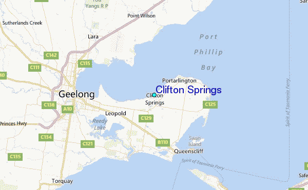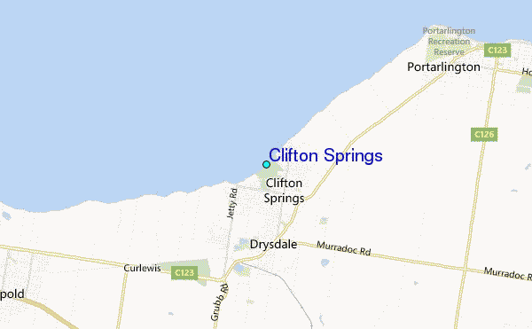 Use this relief map to navigate to tide stations, surf breaks and cities that are in the area of Clifton Springs.
