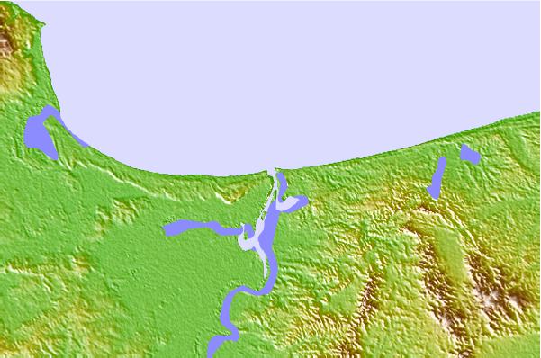 Use this relief map to navigate to tide stations, surf breaks and cities that are in the area of Coatzacoalcos, Veracruz, Mexico.