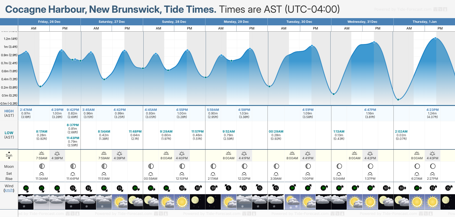 NOTE: Use of this site for Cocagne Harbour, New Brunswick tide times is subject to our terms.