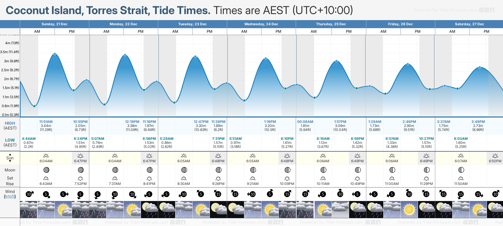 NOTE: Use of this site for Coconut Island, Torres Strait tide times is subject to our terms.
