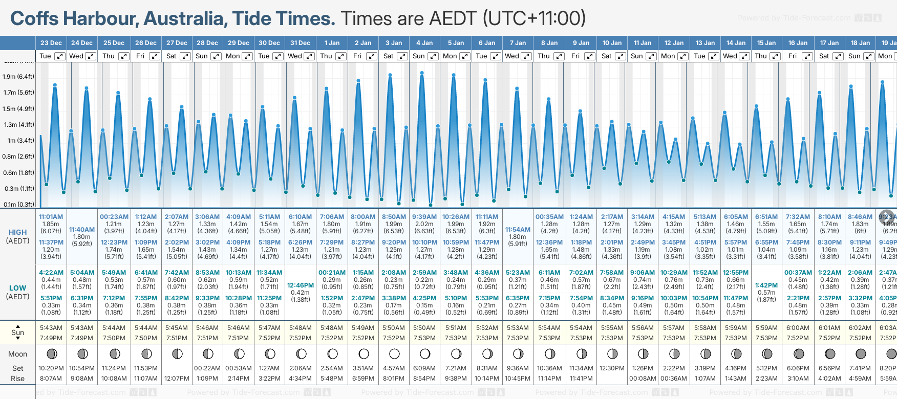 Coffs Harbour tide times for December and January