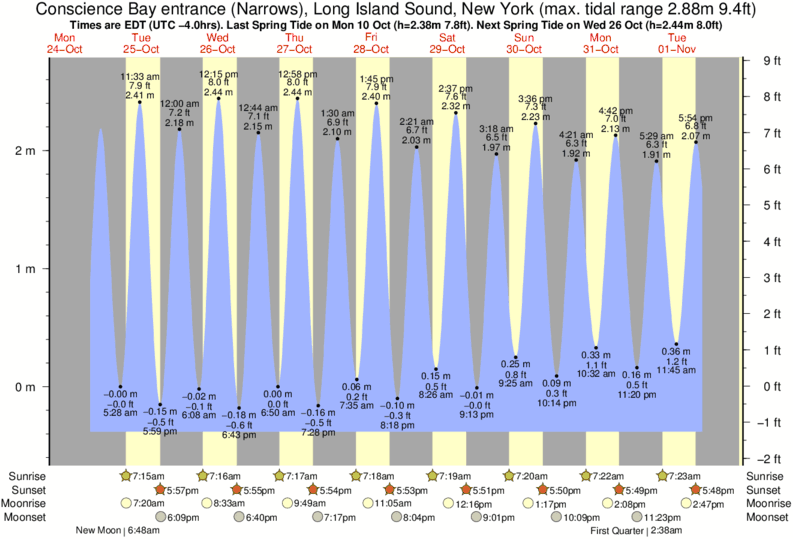 Today's tide times for Conscience Bay entrance (Narrows), Long Island Sound, New York