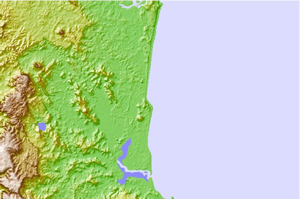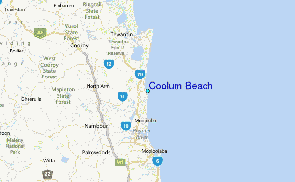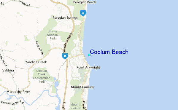 Use this relief map to navigate to tide stations, surf breaks and cities that are in the area of Coolum Beach.
