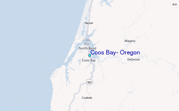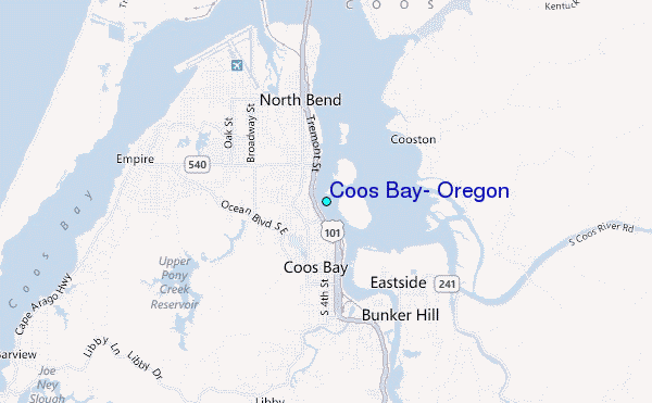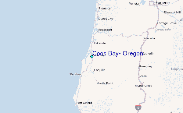 Use this relief map to navigate to tide stations, surf breaks and cities that are in the area of Coos Bay, Oregon.