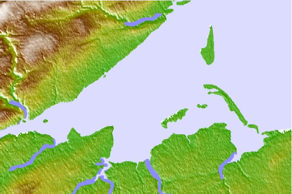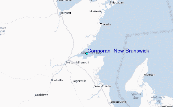 Use this relief map to navigate to tide stations, surf breaks and cities that are in the area of Cormoran, New Brunswick.
