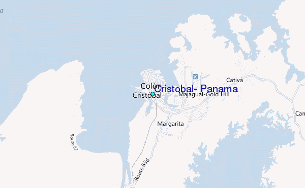 Use this relief map to navigate to tide stations, surf breaks and cities that are in the area of Cristobal, Panama.