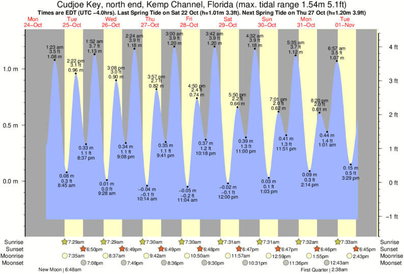 Cudjoe Key, north end, Kemp Channel tide chart key: The tide chart above shows the height and times of high tide and low tide for Cudjoe Key, north end, Kemp Channel, Florida. The grey shading corresponds to nighttime hours between sunset and sunrise at Cudjoe Key, north end, Kemp Channel.
