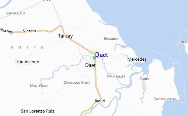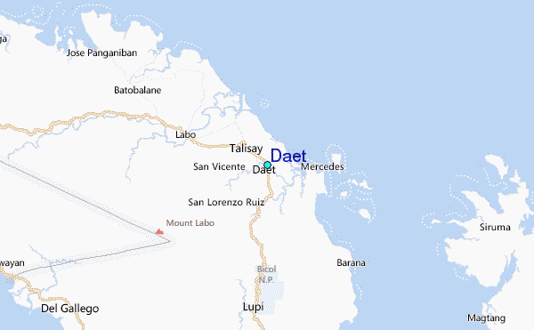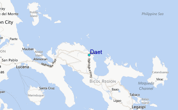 Use this relief map to navigate to tide stations, surf breaks and cities that are in the area of Daet.