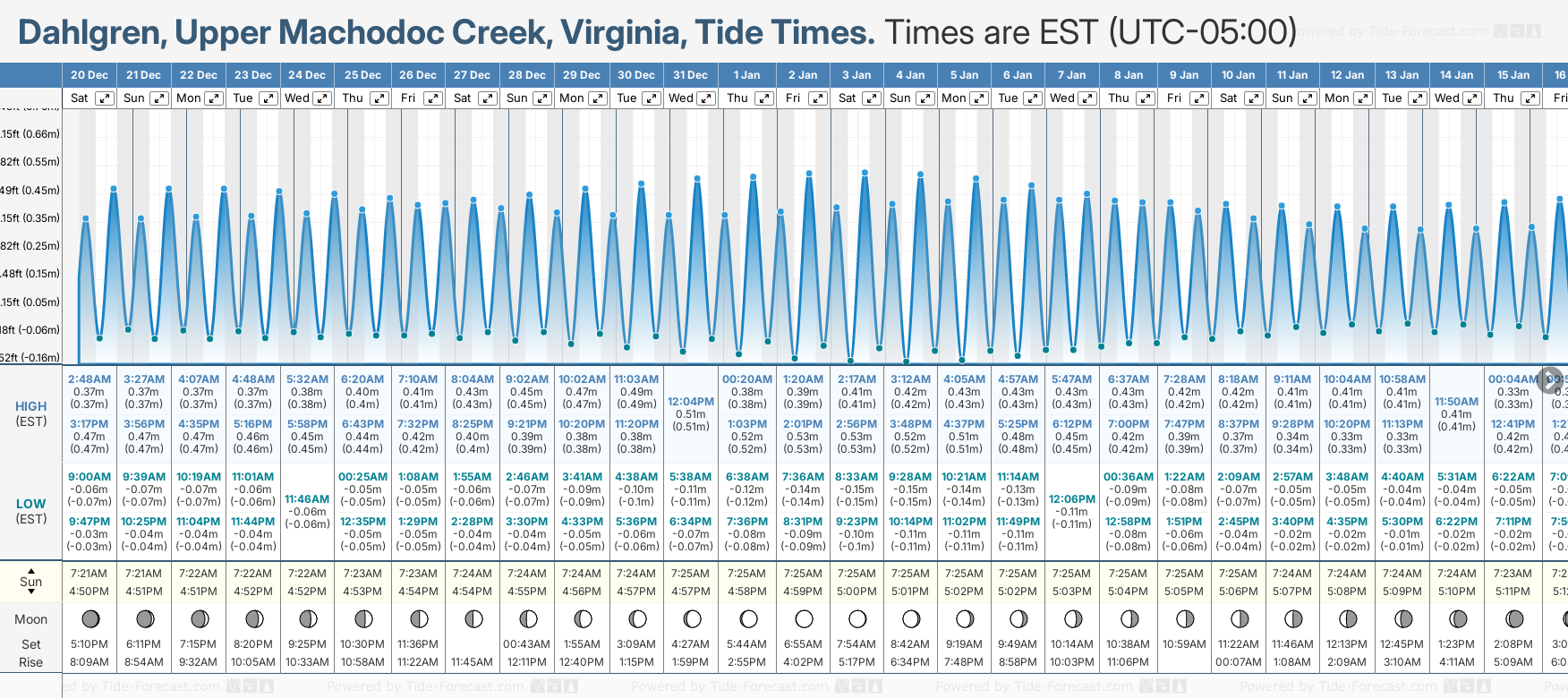 Dahlgren, Upper Machodoc Creek tide times for December and January