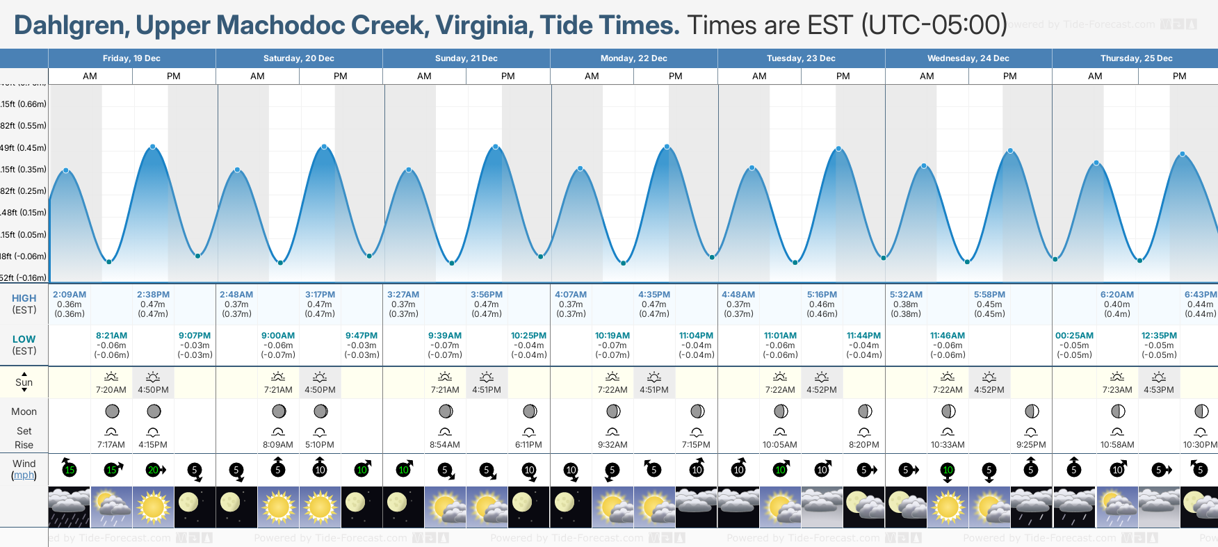 Tide Times for Dahlgren, Upper Machodoc Creek: Thursday 25 December 2025