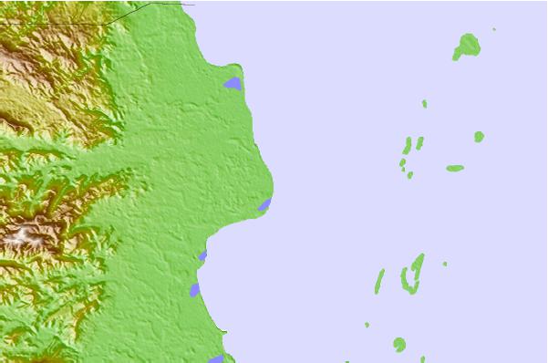 Use this relief map to navigate to tide stations, surf breaks and cities that are in the area of Dangriga.