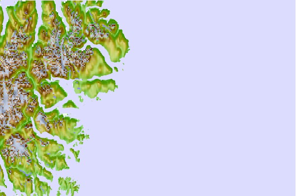 Use this relief map to navigate to tide stations, surf breaks and cities that are in the area of Davis Strait, Nunavut.