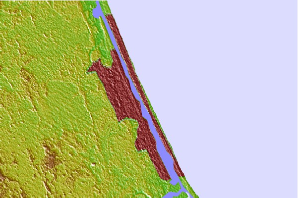 Use this relief map to navigate to tide stations, surf breaks and cities that are in the area of Daytona Beach (Ocean), Florida.