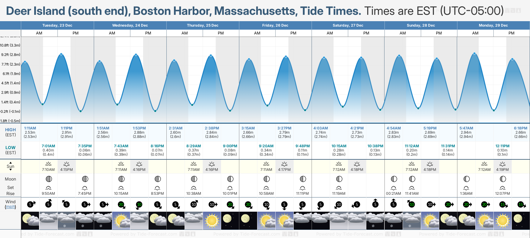 Tide Times for Deer Island (south end), Boston Harbor: Wednesday 24 December 2025