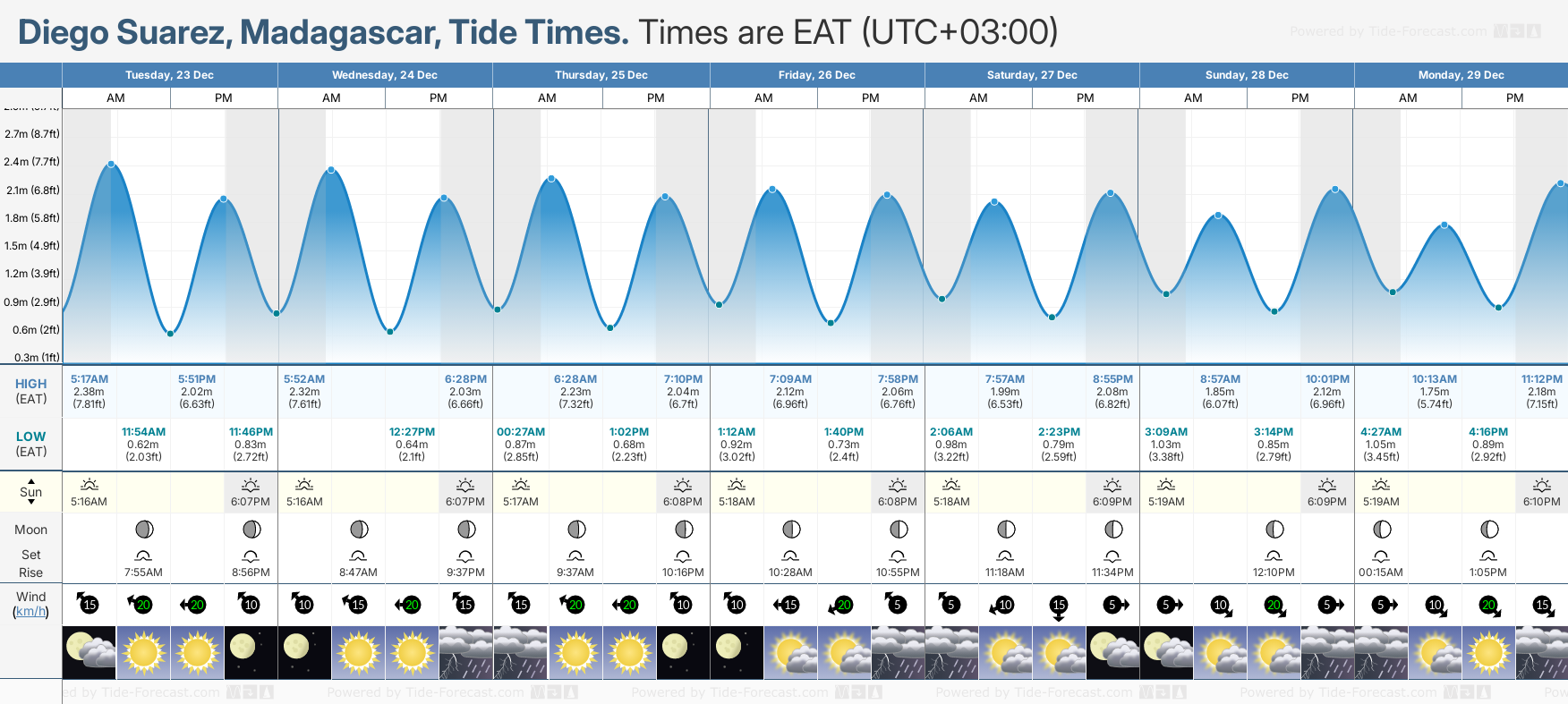 Tide Times for Diego Suarez: Sunday 28 December 2025
