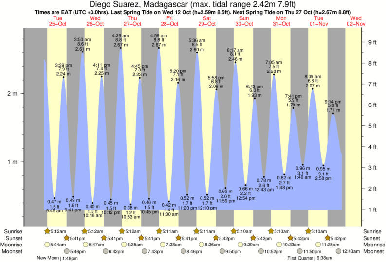 Tide chart for Diego SuarezShowing low and high tide times for the next 30 days at Diego Suarez. Tide Times are EAT (UTC +3.0hrs).