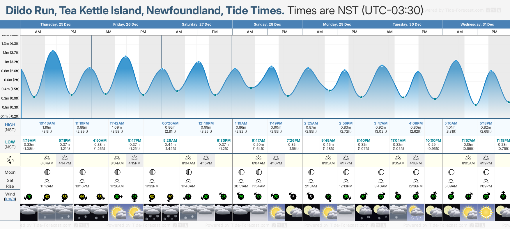 Tide Times for Dildo Run, Tea Kettle Island (tomorrow): Wednesday 24 December 2025