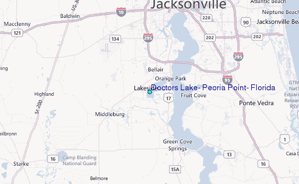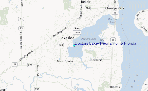 Use this relief map to navigate to tide stations, surf breaks and cities that are in the area of Doctors Lake, Peoria Point, Florida.