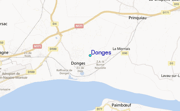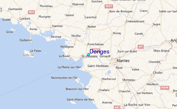 Use this relief map to navigate to tide stations, surf breaks and cities that are in the area of Donges.